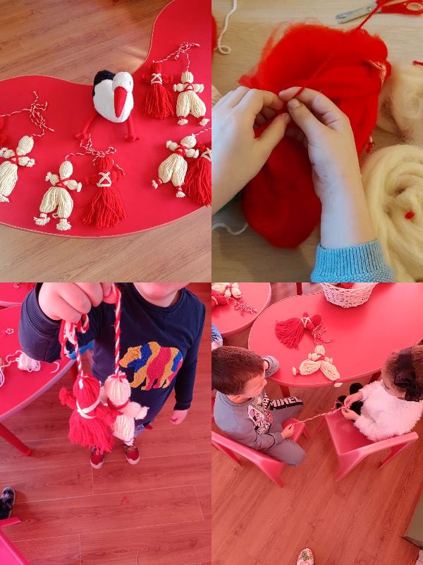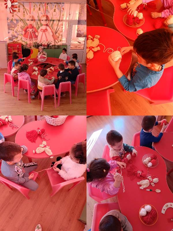 На 26 февруари 2026 г. децата от група „Зайче“ с вдъхновение и старание изработваха мартеници в организирана мартенска работилница. С много усмивки и вълнение малчуганите се запознаха с традицията на българския празник Баба Марта – символ на пролетта, новото начало и надеждата. Малките творци с ентусиазъм усукваха бели и червени конци и оформяха своите мартеници. Децата научиха защо мартеницата се изработва в бяло и червено – цветовете на чистотата, здравето, силата и живота.