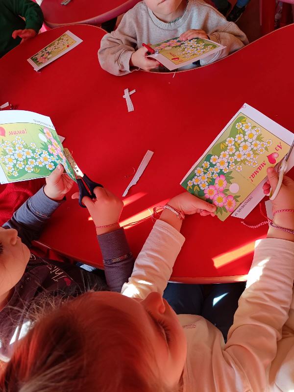 Затова в първите дни на месец март 2026 година децата от група "Зайче" с огромно желание и старание рисуват и апликират красиви картинки, грамоти и картички.