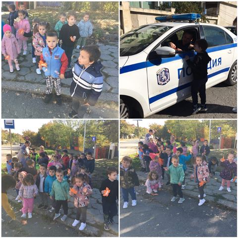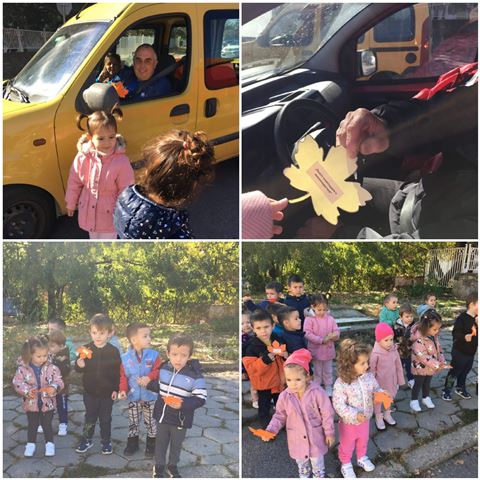 Всички деца от групата раздадоха на водачите на автомобилите своите послания, написани на есенни листа.
