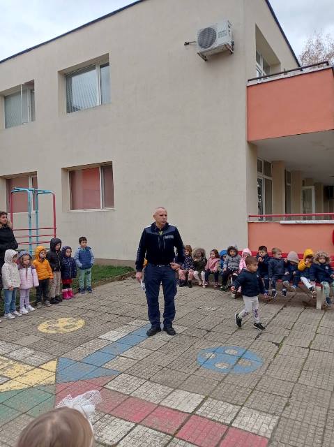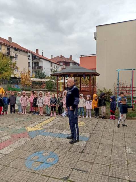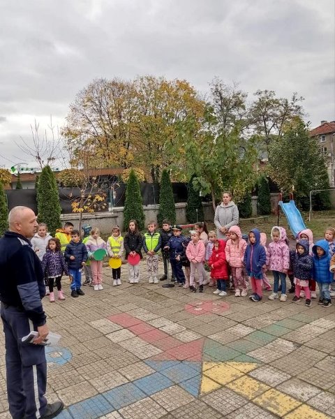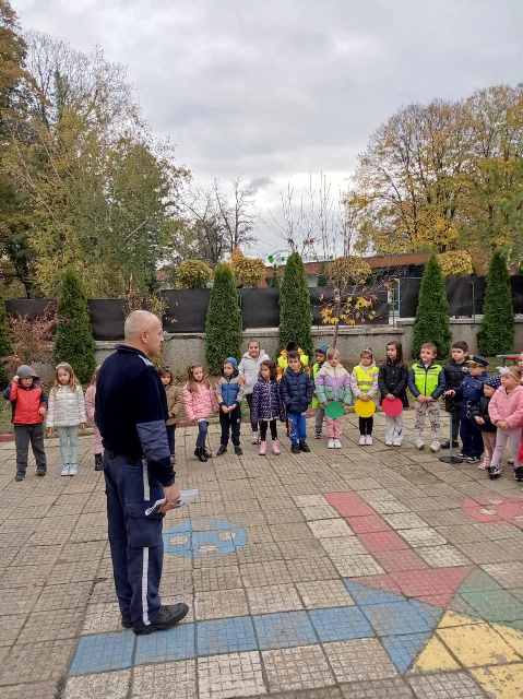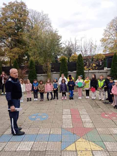На 15 ноември 2023 година в двора на ДГ "Еаелвайс" се проведе 10 - минутна беседа с инспектор Бисер Стоилков - отдел "Пътна полиция" .
