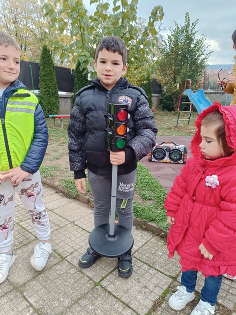 Още от детската градина под формата на игра, те учат правилата за безопастно движение по пътищата. В днешната инициатива участваха всички малчугани от детската градина.