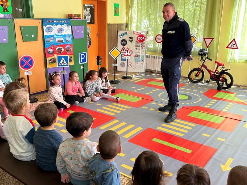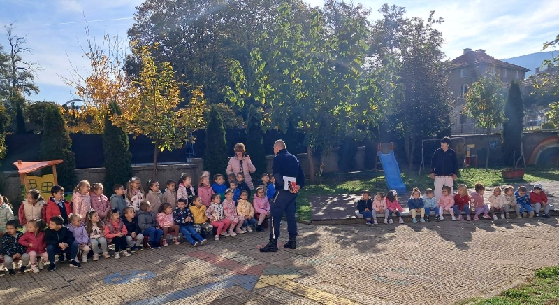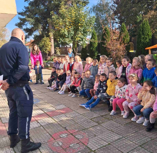 На 14 октомври 2024 година с децата от ДГ „Еделвайс“ се проведе беседа с инспектор Радослав Стойнев от сектор „Пътна полиция“, град Кюстендил. Целта на посещението му беше да опресни и обогати знанията на децата за безопасно движение по пътищата. Напомни им за това къде трябва да играят, как да пресичат пътното платно, да използват предпазните колани в автомобилите, да управляват велосипедите си с предпазни средства. Разговаря с тях за светлините на светофара и пътните знаци. Децата отговаряха на зададените им въпроси и показаха колко много знаят за правилата на пътя.