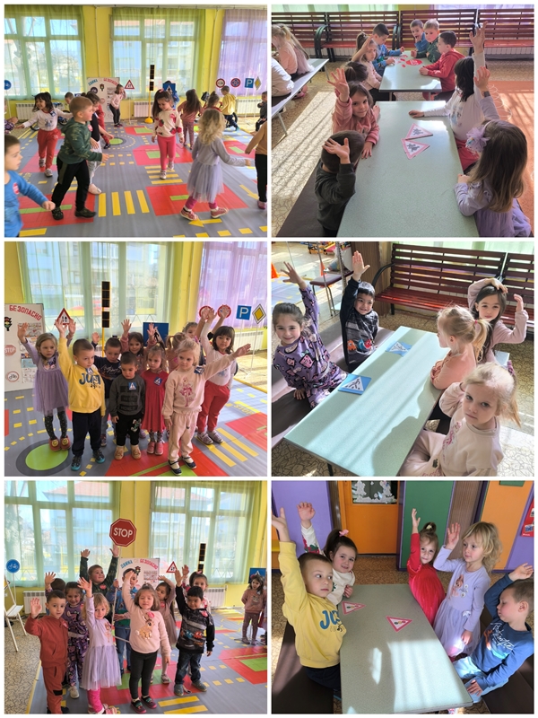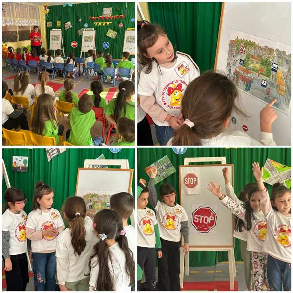 В понеделник децата рисуваха и апликираха по темата и подредиха изложби по групите. Във вторник, чрез подвижни и дидактични игри,децата показаха знания за пътните знаци и правилното поведение на пътя. В сряда децата от група "Звънче", заедно с децата от групи "Врабче" и "Щурче" участваха във викторина под мотото "Правилата зная- безопасно ще се движа и играя", за което бяха удостоени с грамота.