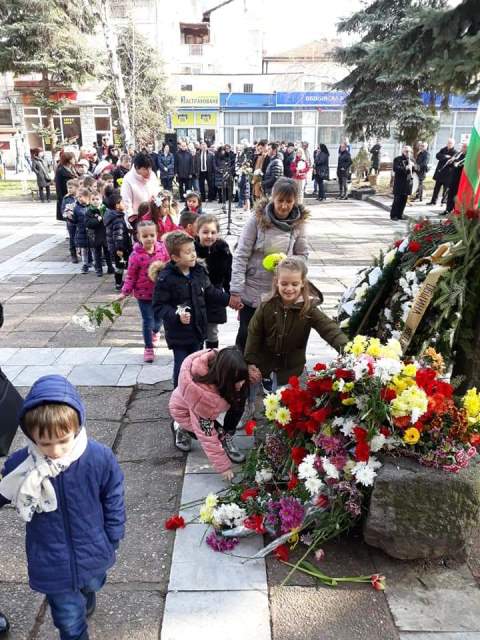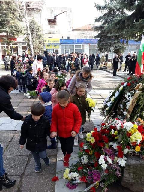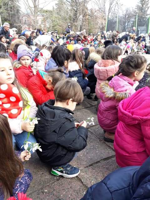 Днес, 19.02.2020 г. пред паметника на Апостола в центъра на гр. Кюстендил се поклониха децата от ДГ "Еделвайс"- групите "Зайче" и "Врабче".