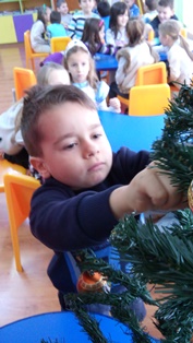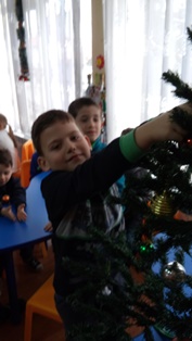 Децата от група „ Врабче“ сами украсиха елхата за тържествено посрещане на коледните и новогодишни празници.