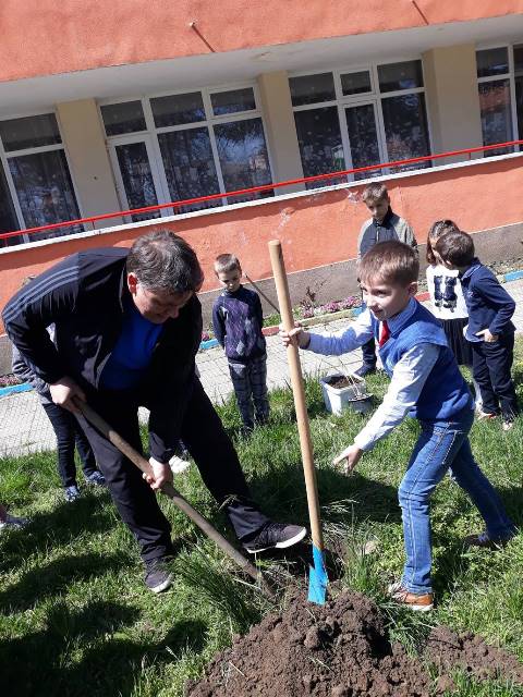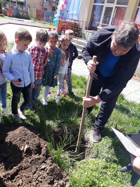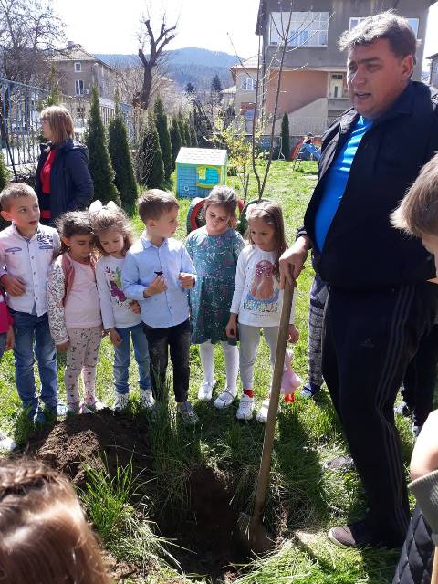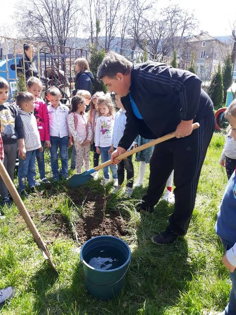 Ще се грижим за дървото с много любов, защото в зелен двор с дървета и цветя, растат здрави и щастливи деца!