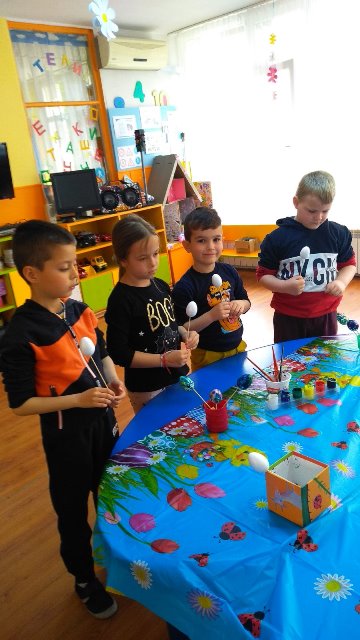 В очакване на деня във Великденската работилничка цареше празнично настроение. Там се запознаха с традициите и обичаите свързани с Цветница и Великден,
