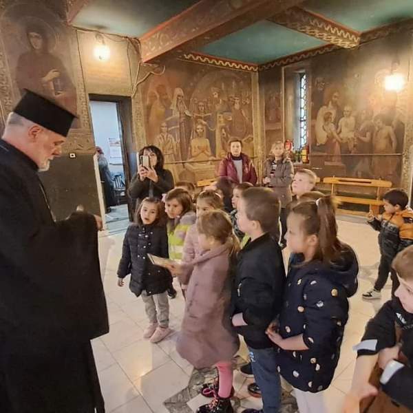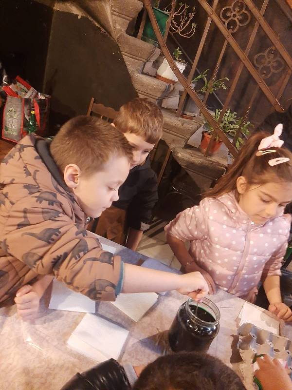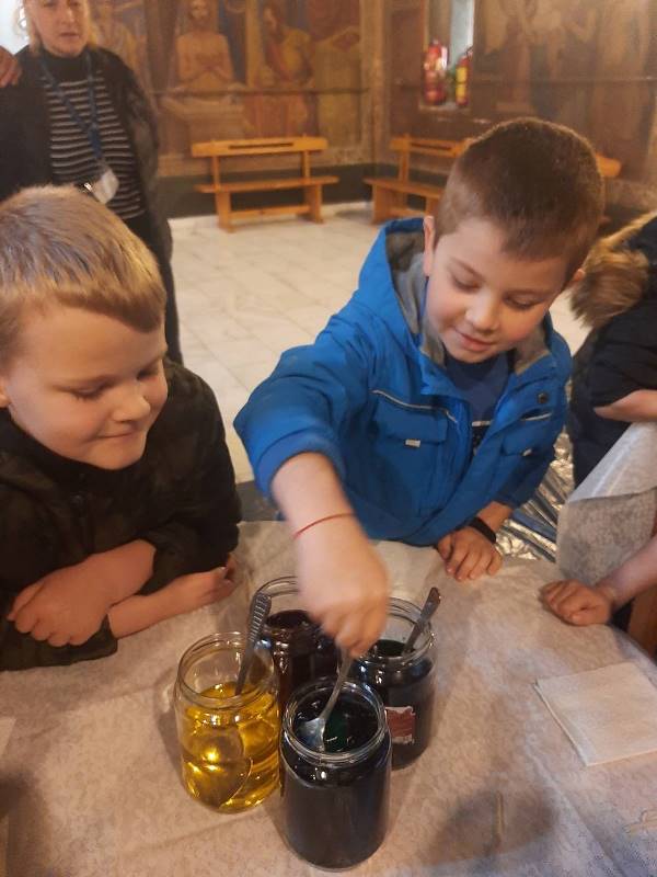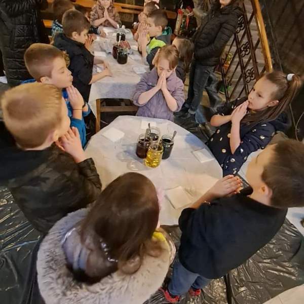 Децата боядисваха яйца, слушаха приказка за Великден. Отец Генади и свещеници от храма им разказаха за предстоящия светъл празник.