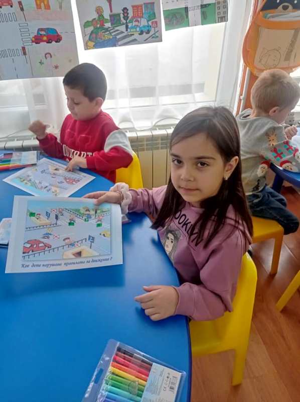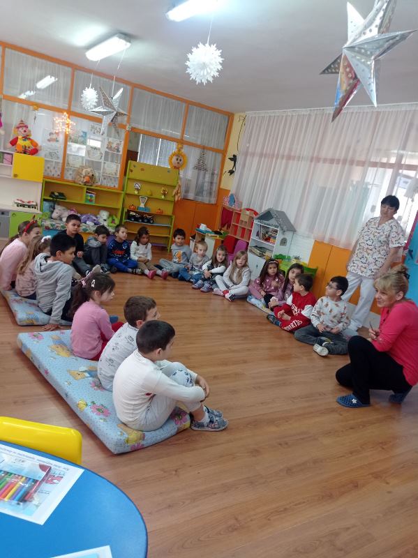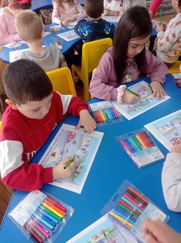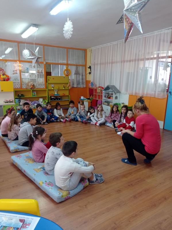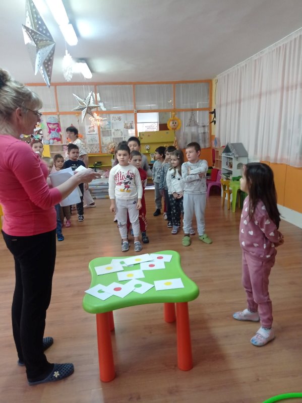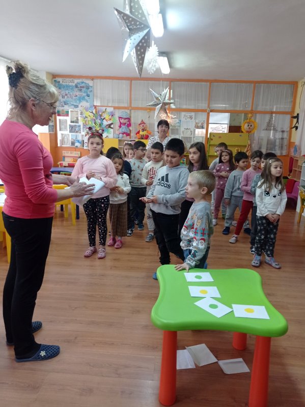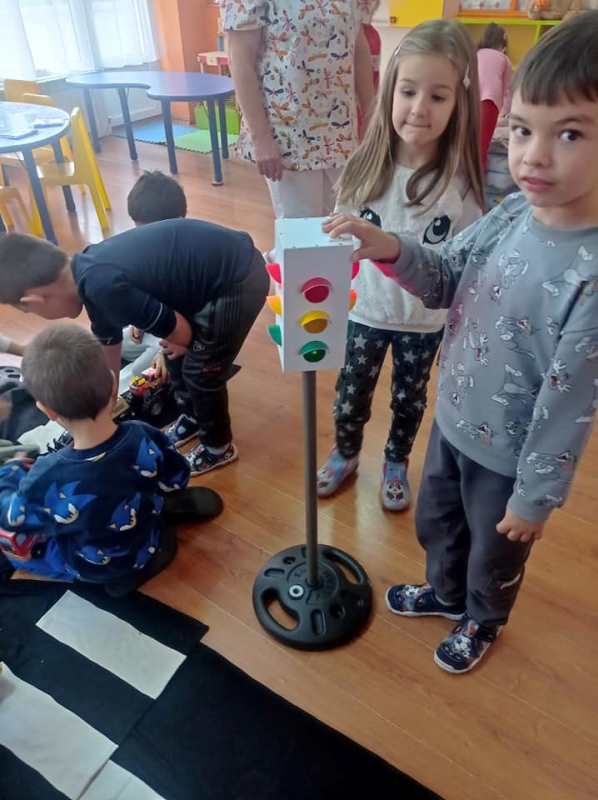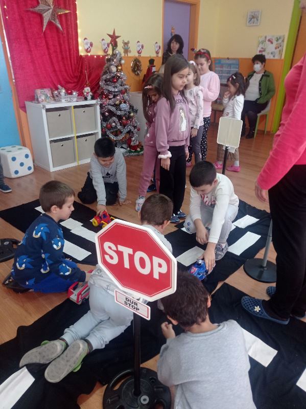 На 07 декември 2023 г. в група „Врабче” се проведе открита педагогическа ситуация по БДП - „На улицата”. Чрез използване на приказния жанр, децата затвърдиха своите знания за безопасно поведение на пътя. Запознаха се с видовете кръстовища и правилата за пресичане чрез обучаващи игри.Получиха информация за „диригента” на пътя – регулировчика и сигналите забранено / разрешено преминаването , които трябва да спазваме.