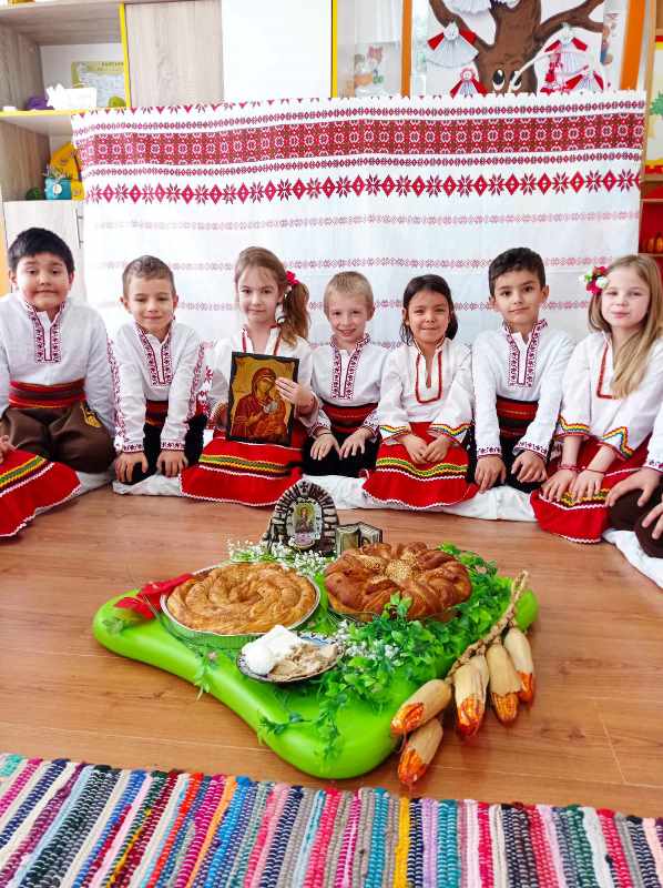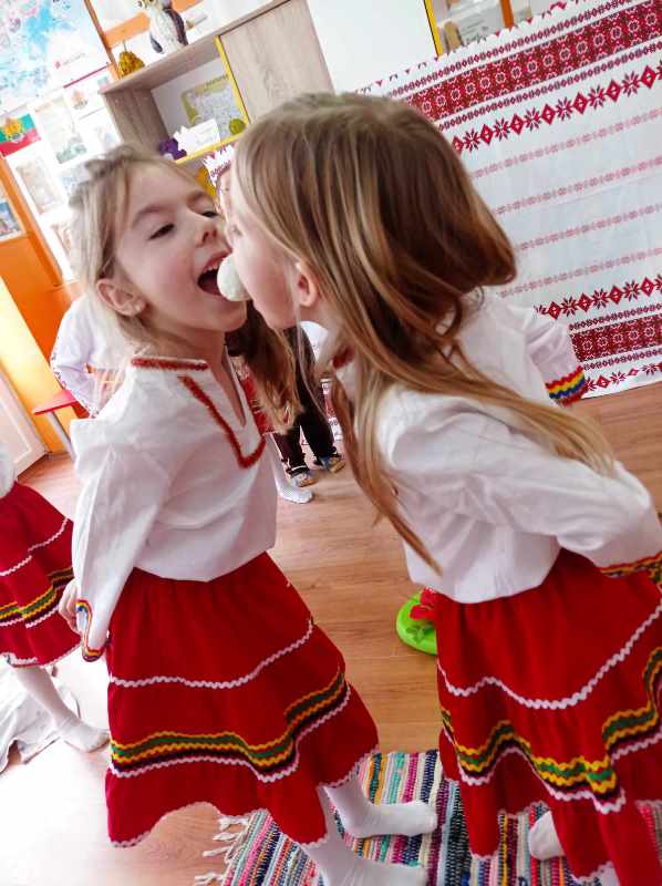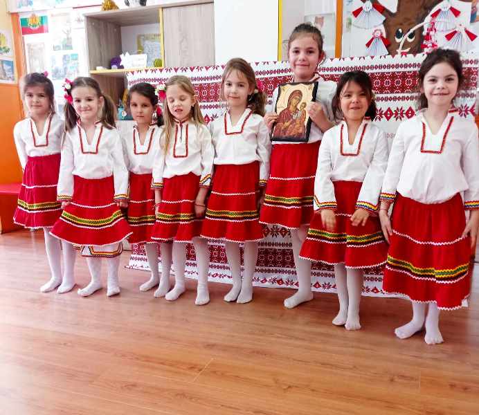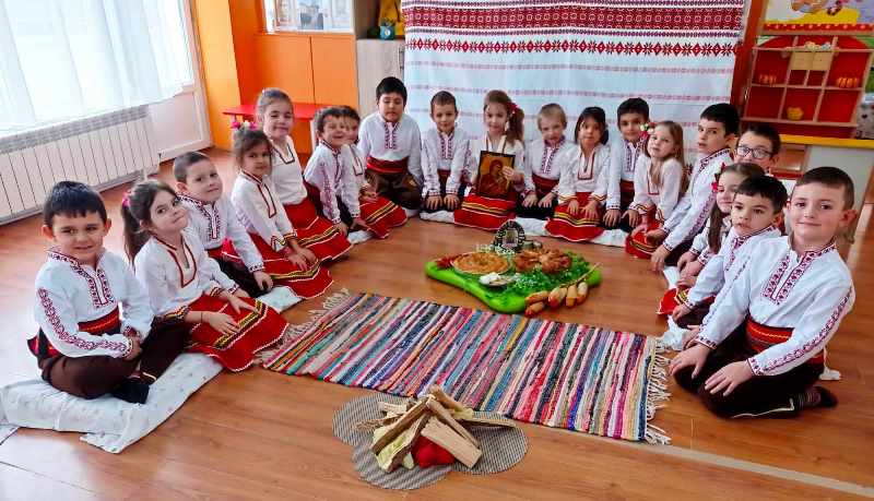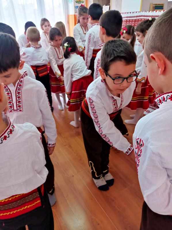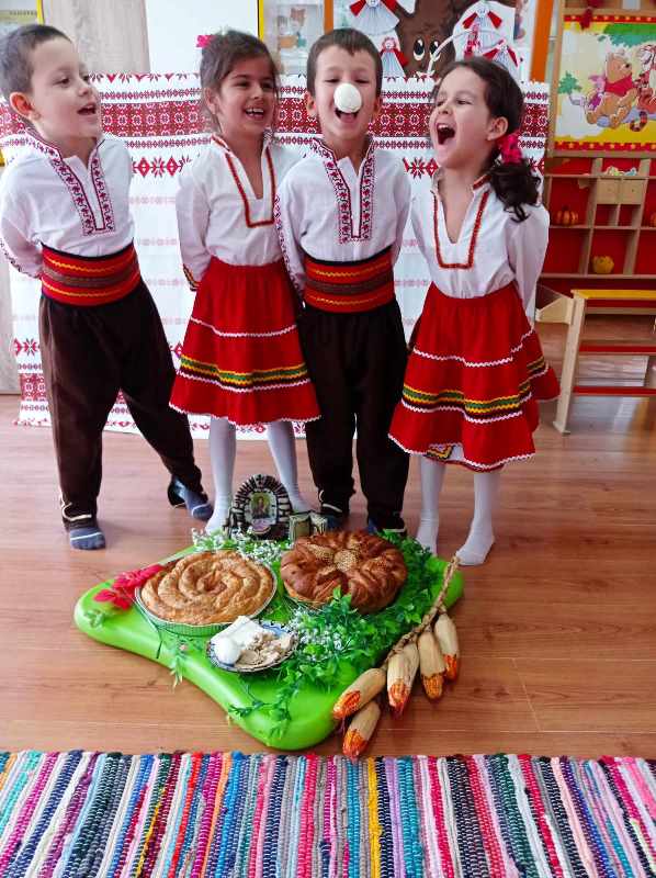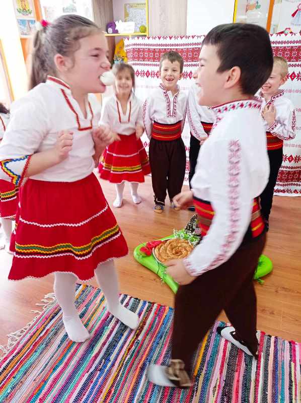 На 12 март 2024 г. децата от група " Врабче" пресъздадоха обичая Сирни заговезни. Те сътвориха един истински празник, посветен на българските традиции. Облечени в народни носии, малчуганите с много настроение предадоха автентичното му съдържание. Децата подредиха трапезата с ритуални ястия - питка, баница, сирене, яйца, халва. С лъвски скок прескачаха огъня за здраве, втурнаха се във весела надпревара кой ще отхапе първи от яйцето. Поискаха си взаимно прошка и почустваха с цялото си сърце и душа, че да дадеш прошка и да приемеш прошка от друг човек е прекрасно усещане. Нека научим децата си да прощават и да искат прошка.