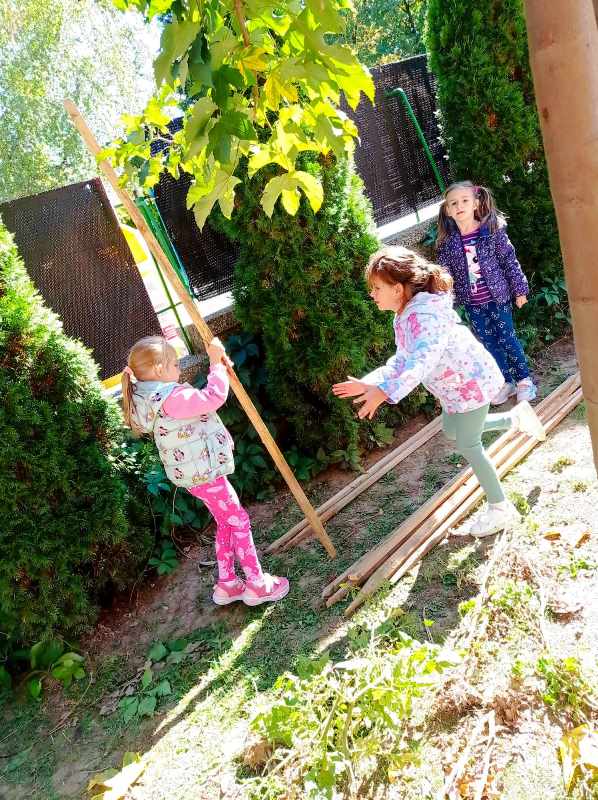 Всички с много желание се включиха и в почистването на градинката - изкорениха и събраха ратителните остатъци, плевелите и прибраха колчетата.
