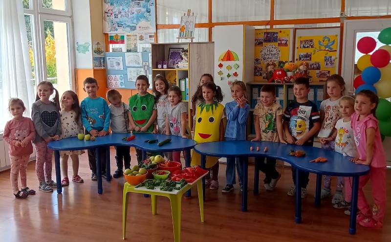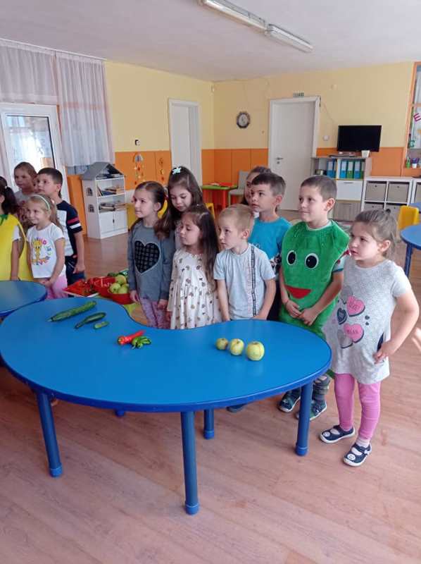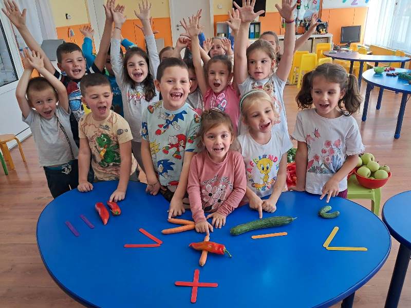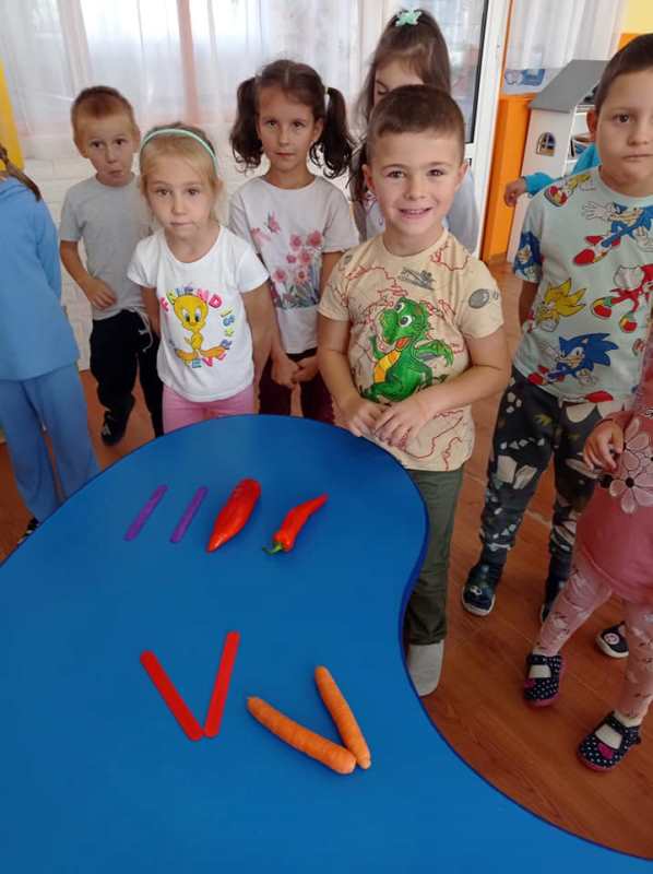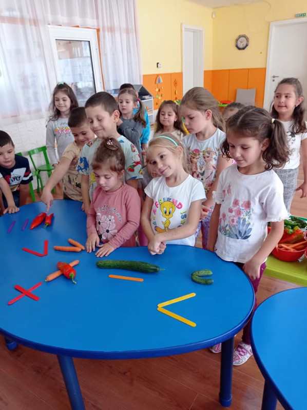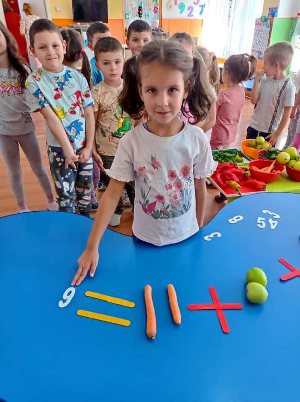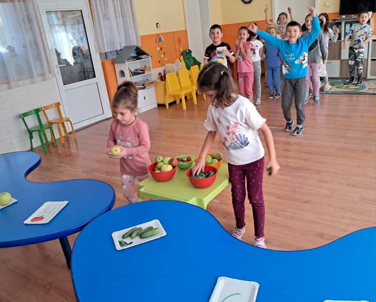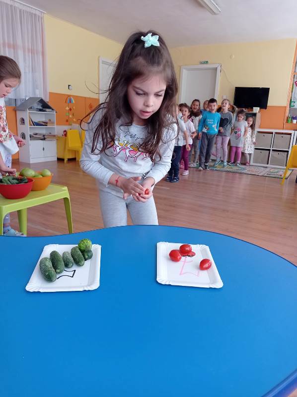 Есента е богата на плодове и зеленчуци.  Използваме ги за здравословна храна, но и за игра. В първата седмица на октомври 2024 година в група "Врабче" се проведоха  математически игри с плодове и зеленчуци. Темата на играта бе " Есенно плодородие" .