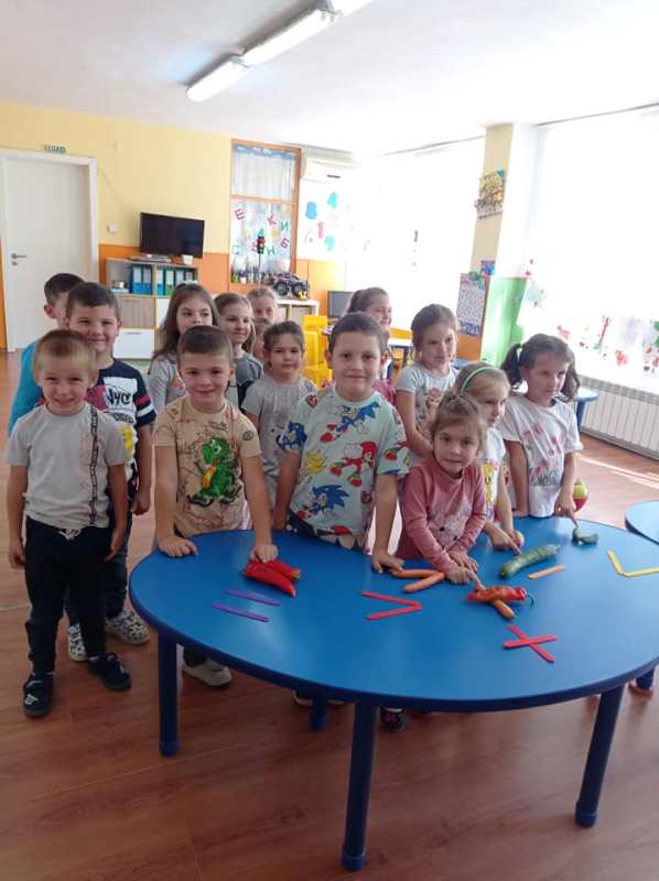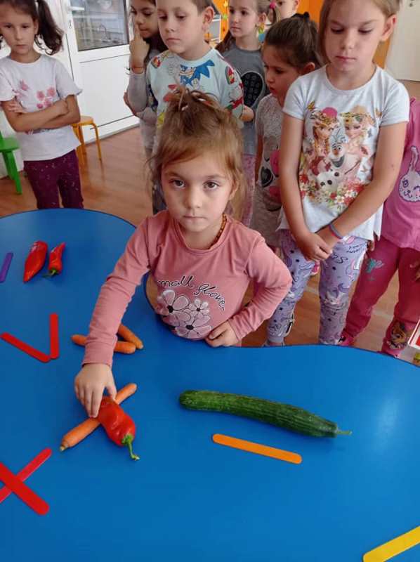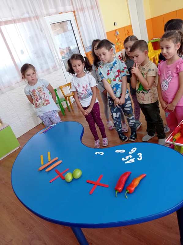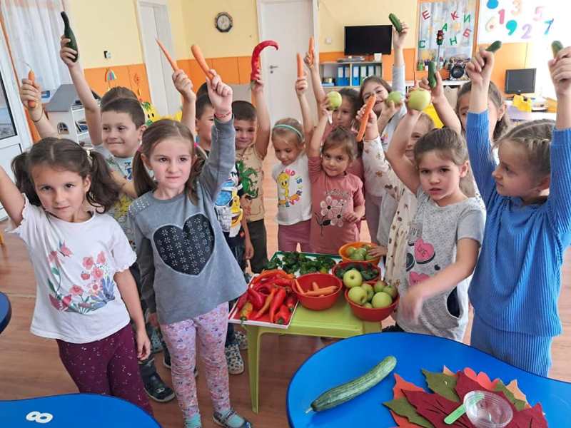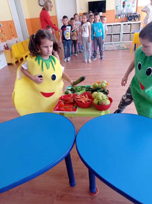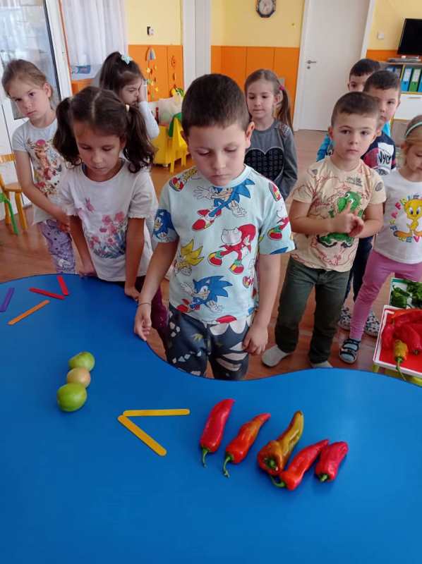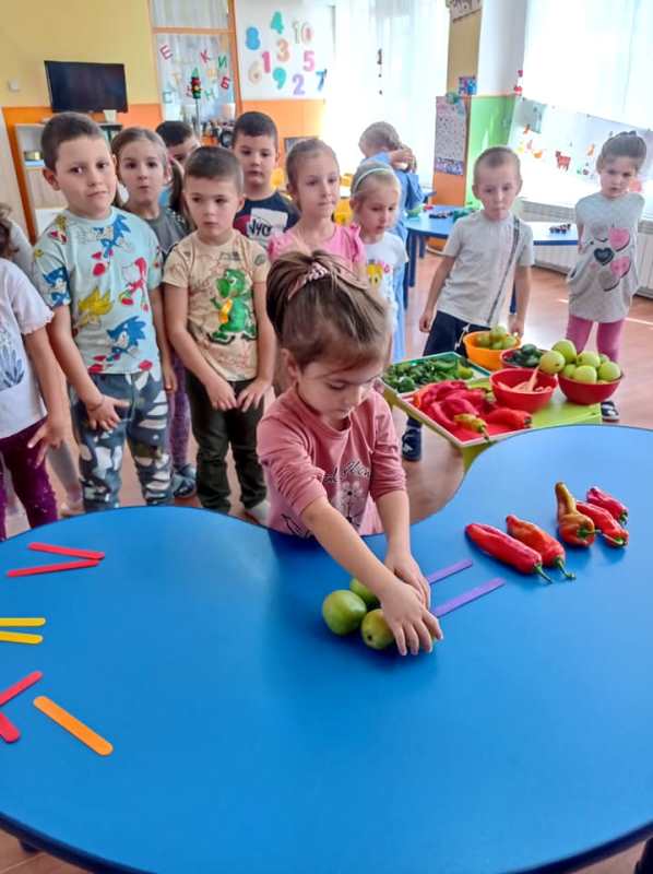 Есента е богата на плодове и зеленчуци.  Използваме ги за здравословна храна, но и за игра. В първата седмица на октомври 2024 година в група "Врабче" се проведоха  математически игри с плодове и зеленчуци. Темата на играта бе " Есенно плодородие" .