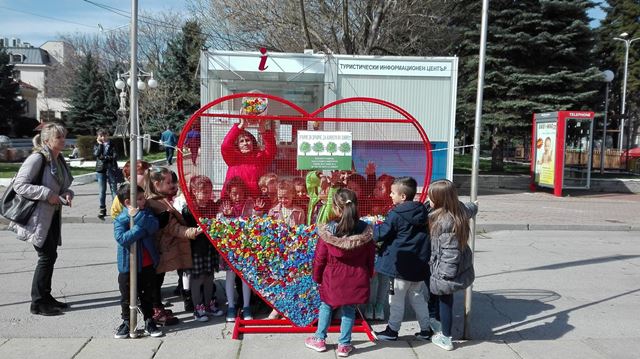 Всяка сутрин, идвайки на детска градина, децата носеха пълни с пластмасови капачки пликчета. Те с нетърпение чакаха петъчния ден, за  да занесат всички събрани капачки на площад „Велбъжд”. На 30 март събраните капачки вече бяха поставени в металното сърце на площада. Очичките на децата блестяха щастливи за това, че и те помагат за зеленината на град Кюстендил.