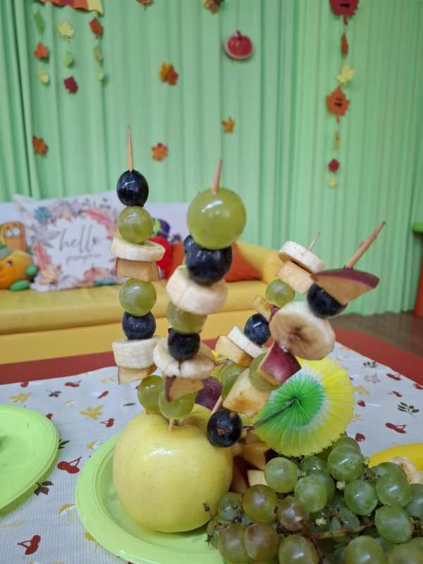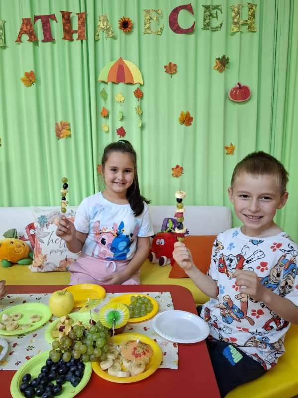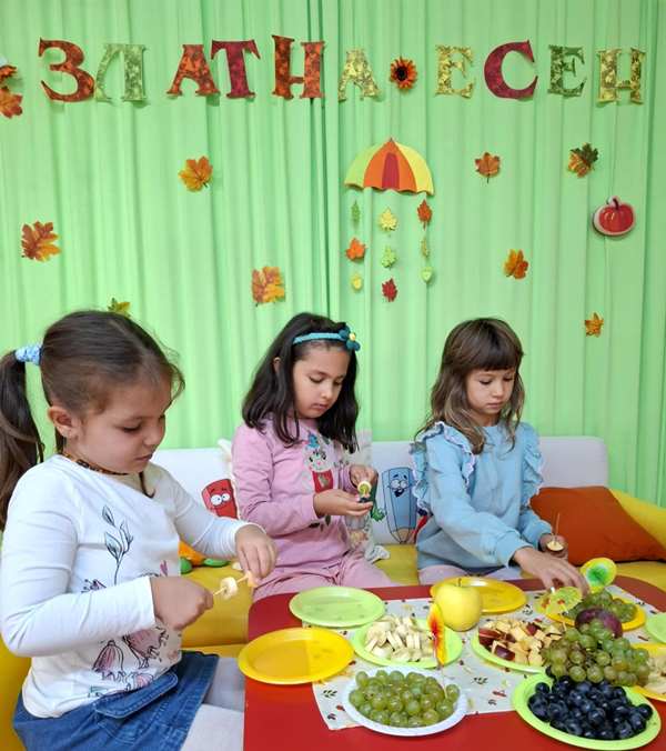 На 8 октомври 2025 децата от група "Врабче" се насладиха на здравословна и цветна закуска. Те участваха във вкусно и забавно занимание - изработка и хапване на плодови шишчета.