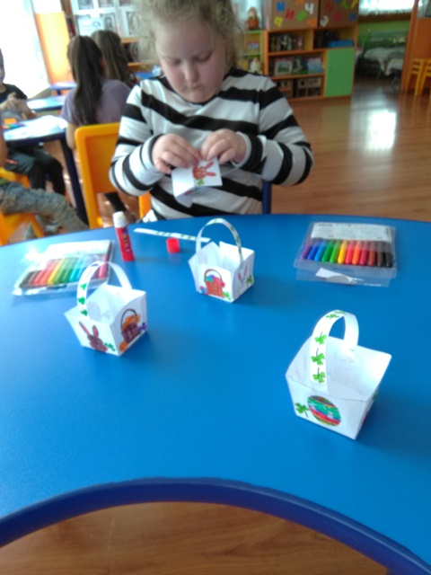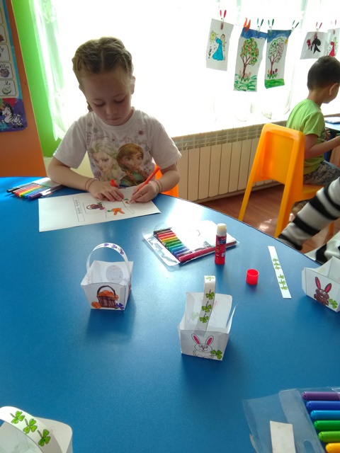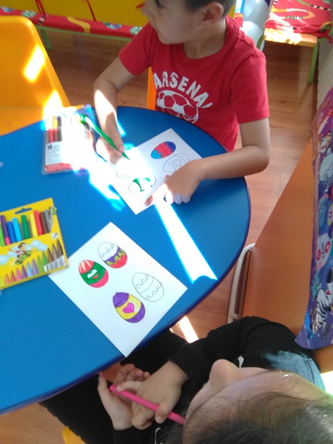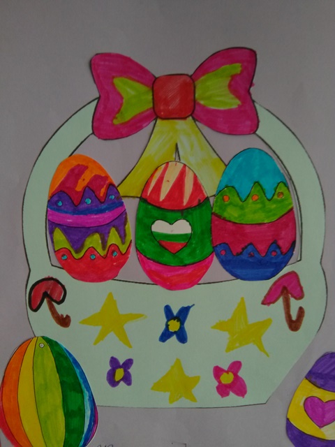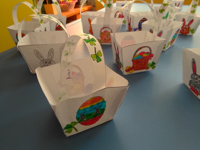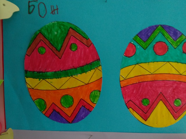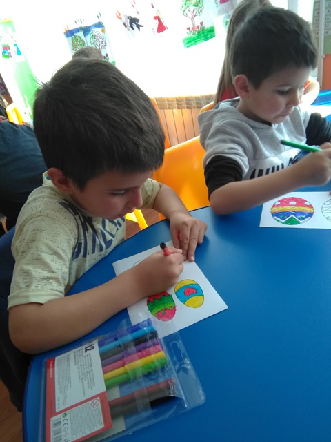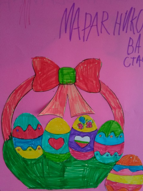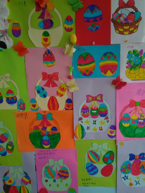 С голямо желание децата  изработваха картички, кошнички за яйца. Няколко дни преди празника и украсата ни бе готова. С нетърпение децата очакваха да дойде четвъртък , за да боядисват великденските яйца – и разбира се както традицията повелява първото трябва да бъде червено.