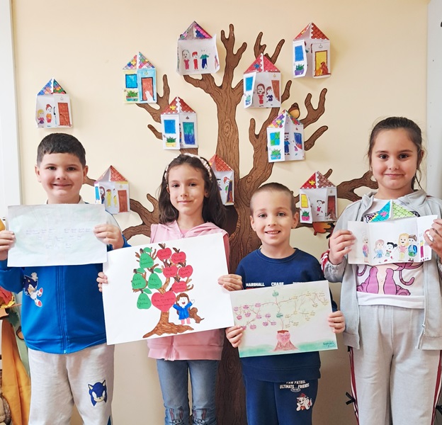 rodoslovie 8В навечерието на един от най-светлите български празници "Въведение Богородично" деца и родители изработиха в домашна среда своето родословно дърво. Родителите силно въздействат върху развитието на детската личност със своите знания, система от ценности и модели на поведение. Семейството е една малка лаборатория, в която се развиват основните ни нагласи и представи за света. Ето защо е толкова важно да помагаме на децата заедно да развиват пълноценни нагласи и модели, които да им послужат в ролята на възрастни, родители или партньори.