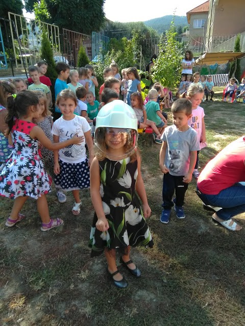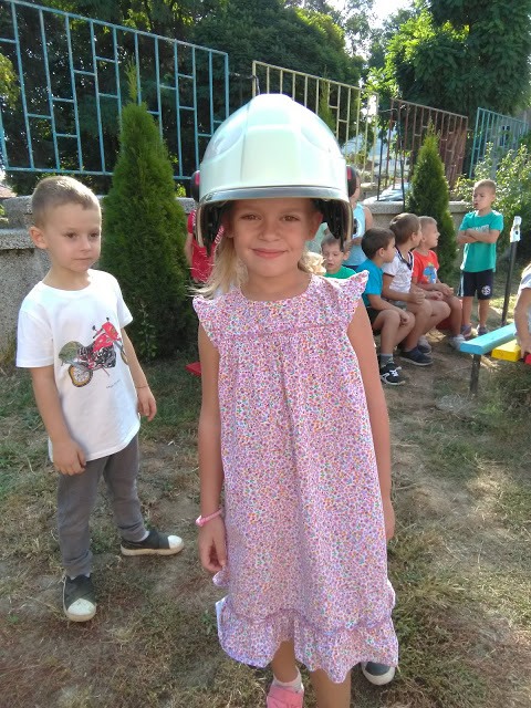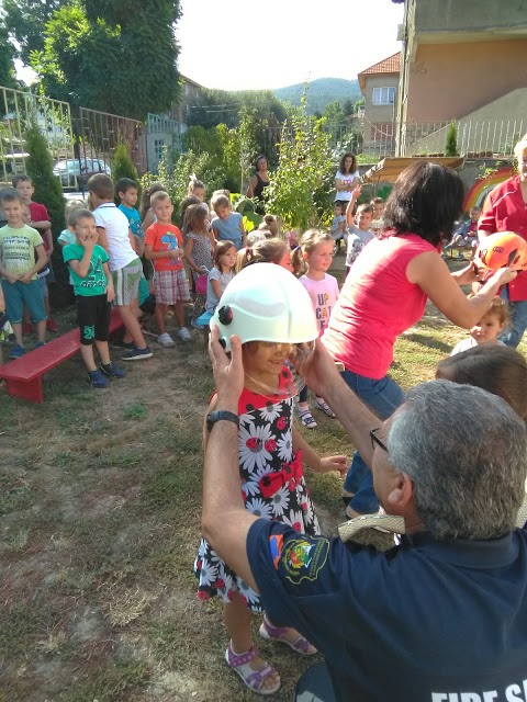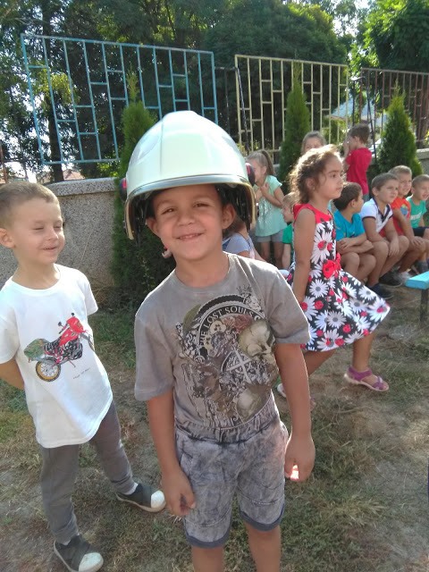 Всяко едно от децата имаше желание да постави пожарникарския шлем и да се почувства поне за миг като истински пожарникар. Будните ни и умни деца, не се затрудниха и от зададените гатанки, като за всеки верен отговор получиха и награди.
