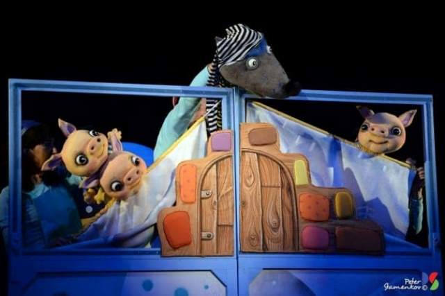 Актьорите от Държавен куклен театър Русе по невероятно забавен начин разказаха познатата на всички история за трите малки прасенца и лошия сив вълк. Добре подбраната музика, хубавият декор и чудесната игра на куклените артисти очароваха детската публика.