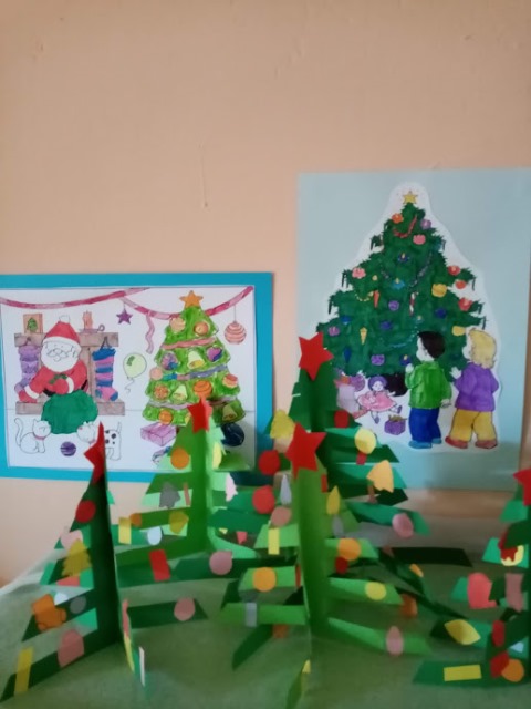 За добрия белобрад дядо децата от група „Врабче” са изработили и много рисунки и апликации, с които се надяват да го зарадват и да му ги подарят на коледното тържество в Общинския театър.