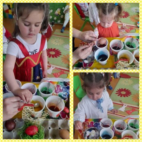 На Велики четвъртък - 21 април 2022 година малките "ежковци" по традиция и с много старание и настроение боядисаха яйца - червени , сини , жълти , зелени , шарени .