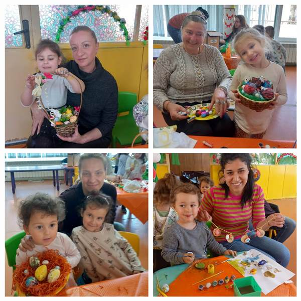 На 12 април 2023 г., в група „Ежко“, се проведе Великденска работилница по случай наближаващия празник. С помощта на различни материали, деца, учители и родители изработиха красиви великденски играчки, картички, пролетни картини, украси, които ще се продават на благотворителен базар на 13 април 2023 г. в двора на детската градина.