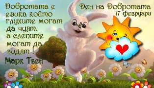17 февруари е световен ден на доброто! Това е една от новите инициативи на международните благотворителни организации. На този ден трябва да се опитаме да сме по-добри, мили и безкористни.