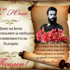 Песни за България и Ботев, стихове и много патриотично настроение изпълниха двора и занималнята на група "Зайче" на 02.06.2021 г. в деня на Ботев. Чрез въздействието на презентацията, тематичните приказки и рисунки децата се потопиха в историята в дух на патриотизъм и национална гордост. Всички сведоха глави и отдадоха почит, когато чуха сирените в 12 часа на обяд.