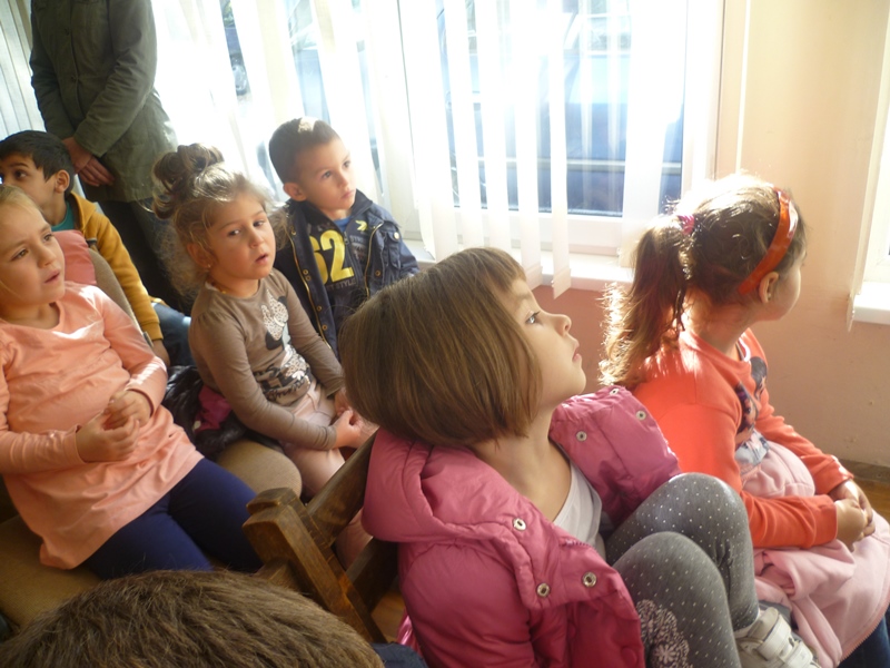 Децата с голям интерес слушаха и разказваха любимите си приказки "Дядо вади ряпа", "Трите прсенца", "Медената питка" и др.