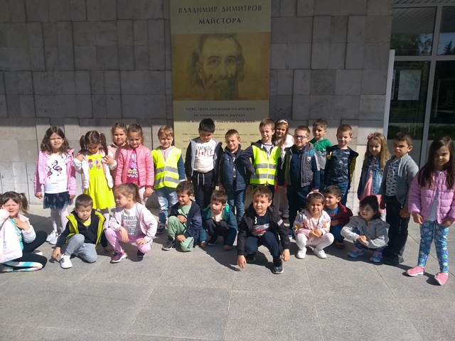 На децата от група "Зайче" днешният ден /09.05.2022 г./ донесе положителни емоции, защото посетиха картинната галерия в гр. Кюстендил. Те се запознаха с прекрасните картини на най-значимия български художник със световна известност Владимир Димитров - Майстора. Беседата с уредника Б. Велинова отговори на всички въпроси свързани с творчеството и живота на художника.