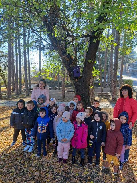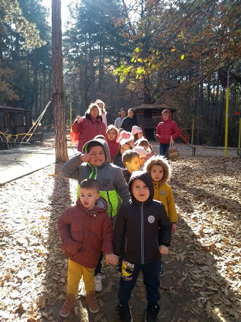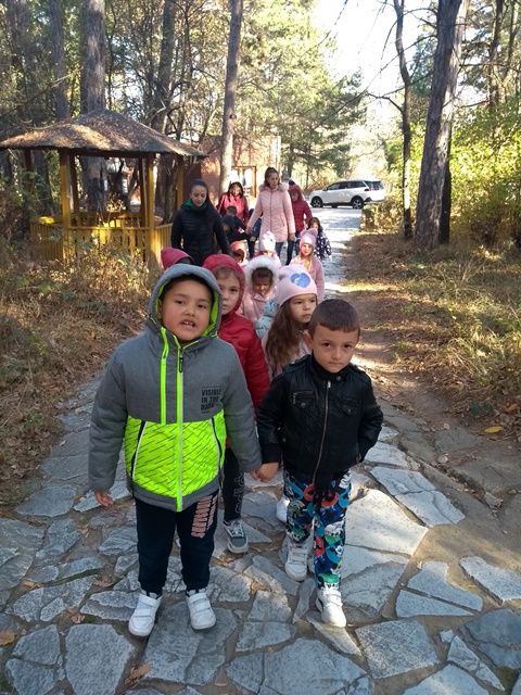 Всички се насладиха отблизо на есенната красота, по време на разходката с образователна цел. Децата наблюдаваха промените, които настъпват през есента в живата и неживата природа. Учителката В. Стоянова запозна децата с историята на късноантичната средновековна крепост Хисарлъка.