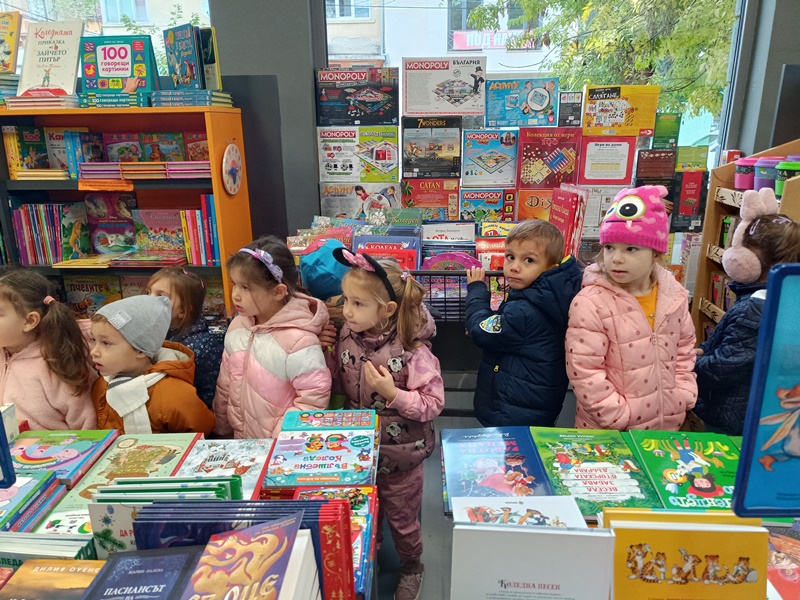 На 10 ноември 2023 година децата от група " Зайче" посетиха книжарница "Хеликон". Децата научиха къде живият книгите. С трепет те се докоснаха до свойте любими детски книжки.