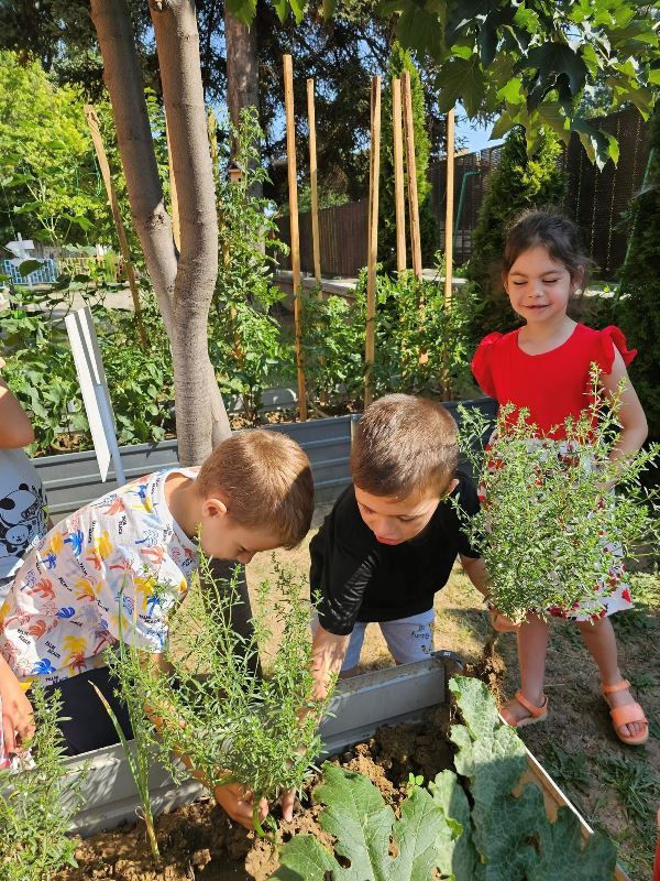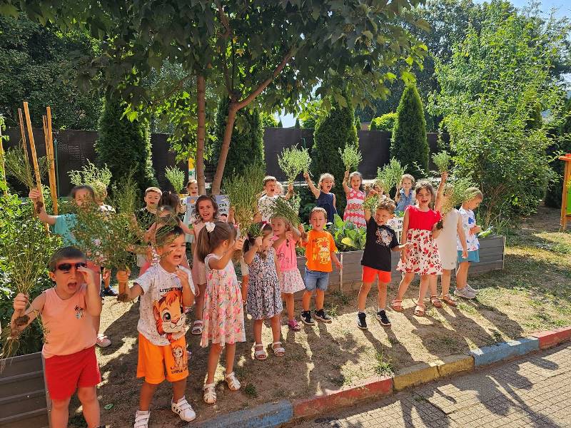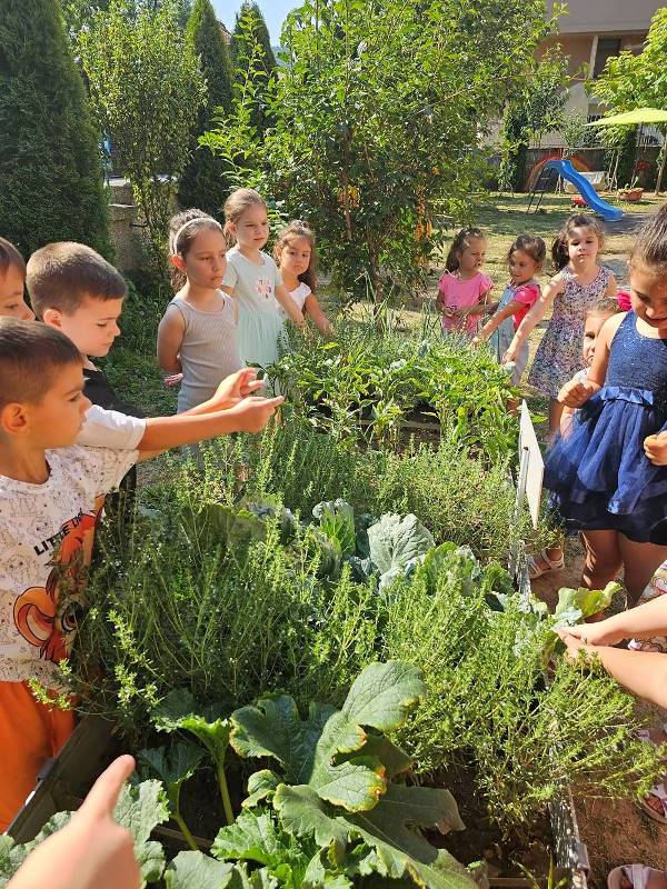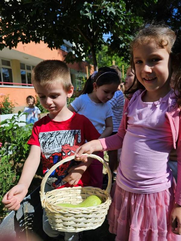 В средата на месец юли 2024 година група "Зайче" и техните приятели от групи "Щурче" и "Врабче" с интерес и любопитство демонстрират умения на опитни градинари. Ентусиазираните "стопани" с удоволствие занесоха набраните чушки, тиквички, чубрица и магданоз в кухнята на детското заведение и ги предадоха на опитните готвачи, за да приготвят вкусна храна за всички деца от нашата детска градина.