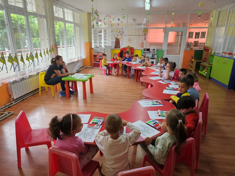 На втория ден гост беше учител от ПГСС "Св. Кл. Охридски"- Кюстендил, който увлекателно разказа на децата за предстоящия празник- 24-ти май. Децата оцветиха тематични картинки, които подредиха в изложба.