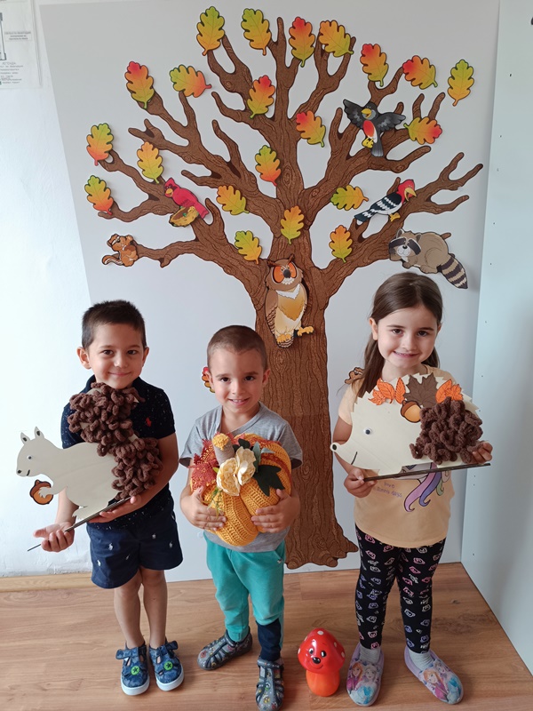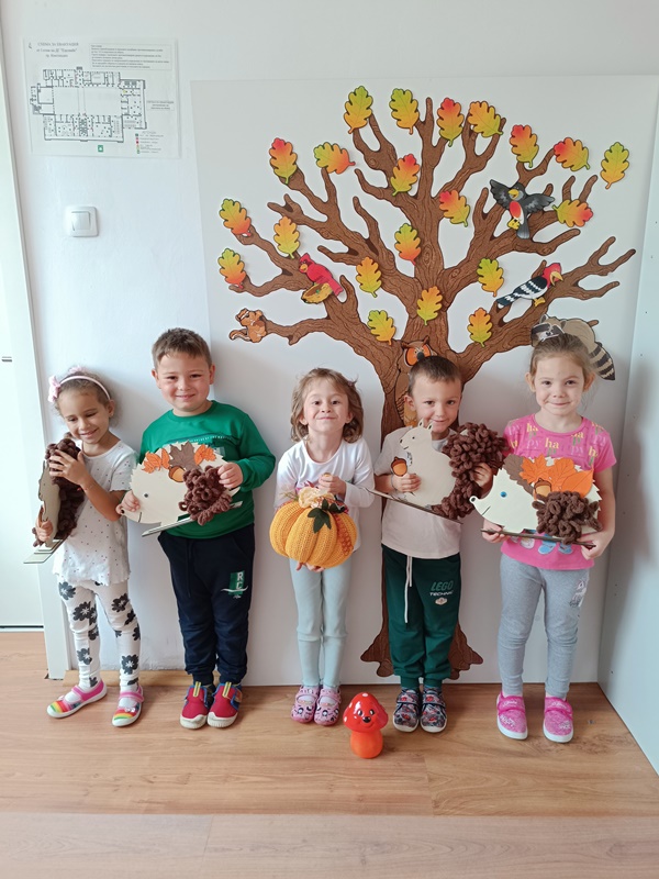 С настъпването на есента, децата от група "Зайче" създадоха уютна и красива атмосфера в своята група. В края на месец септември 2025 година те оформиха есенен интериор с весели катерички и грижливо подредени таралежи- символи на златния сезон.