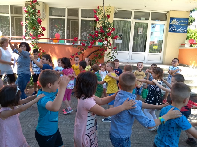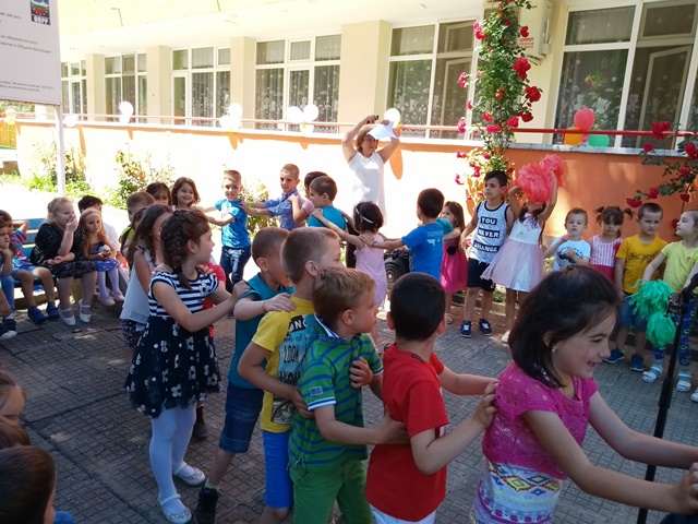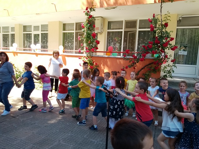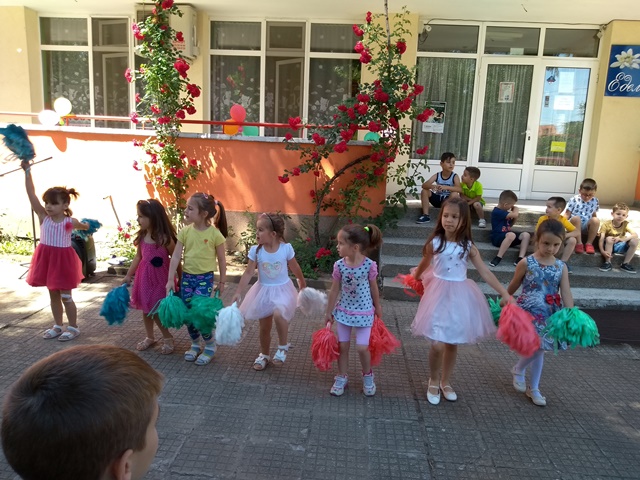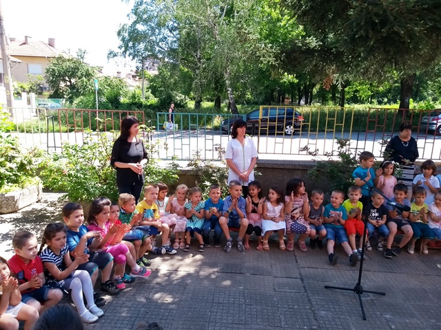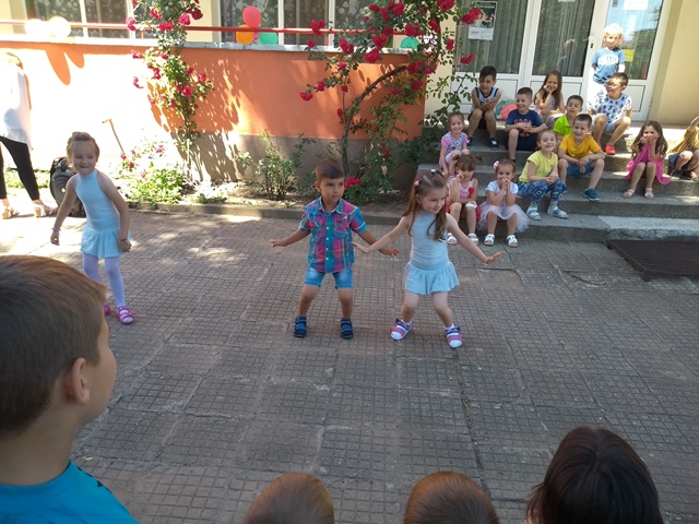 Забавленията за децата продължиха в двора на детската градина. Със стихотворения, песни и весели игри, малки и големи се радваха на сладурите показали умения в модерните танци. Всяко дете получи подарък от ДГ по случай празника.