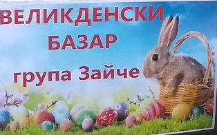 На 25.04.2019 г. в навечерието на един от най-големите християнски празници в двора на ДГ "Еделвайс'' родители организираха великденски базар. В него се включиха децата от група "Зайче", техните родители и учители с ръчно изработени сувенири, картички, украса за празника и кулинарни изкушения, изработени с майсторство, творческо въображение и стил.