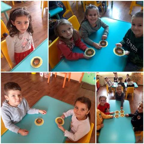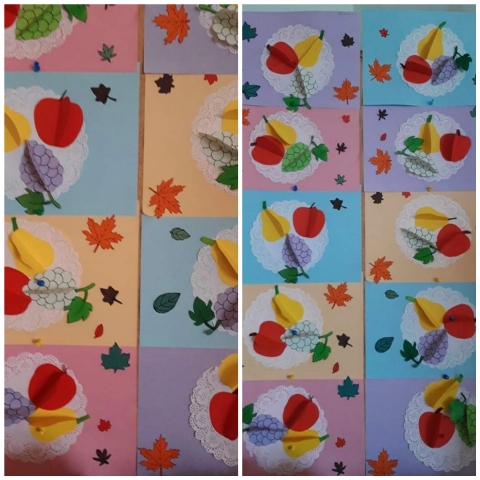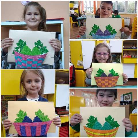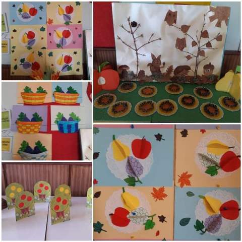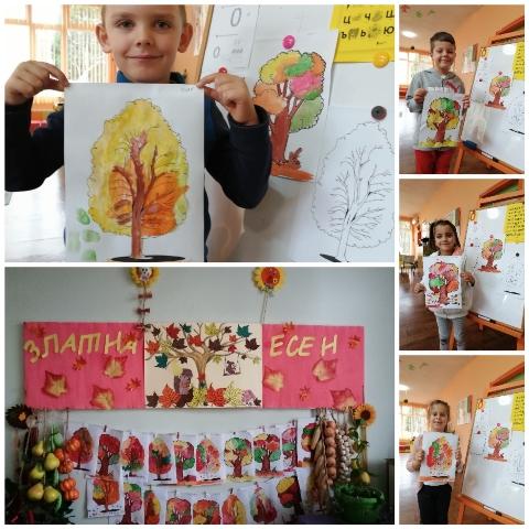 Това есенно изобилие и красота провокира децата от група“ Звънче“ и те я претвориха в рисунките, които нарисуваха и апликациите, които изработиха.
