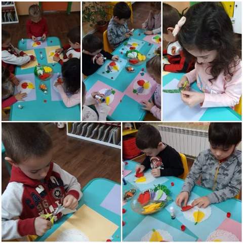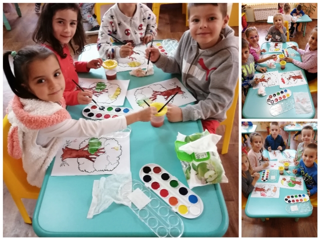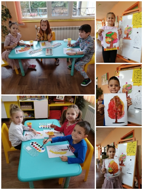Малките художници с удоволствие рисуваха, оцветяваха, режеха и апликираха през месец октомври 2021 година. Подредиха и изложба.