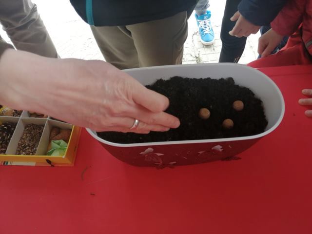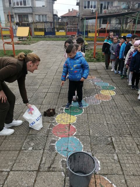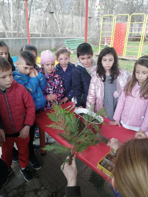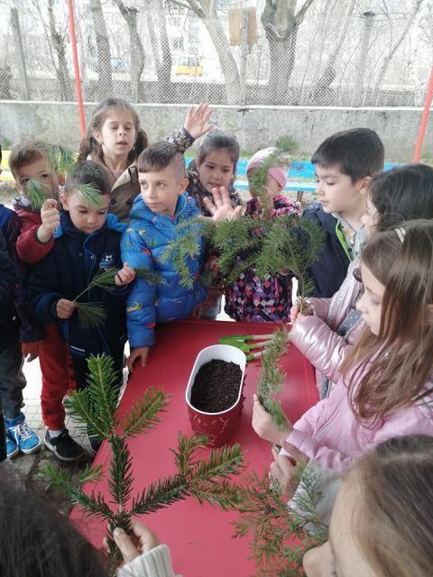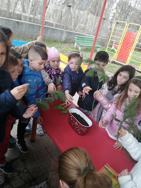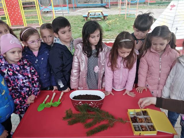 Засадиха семена на дъб и бор, а след това играха подвижни игри с природни материали.