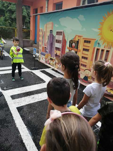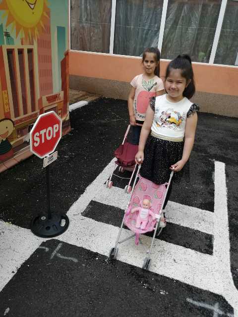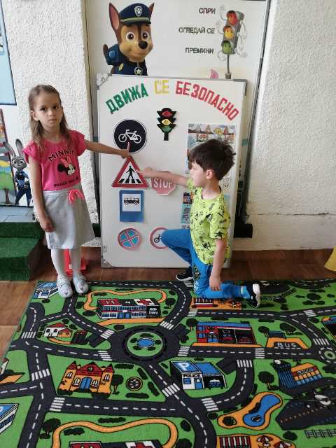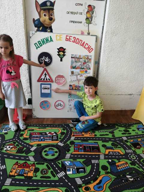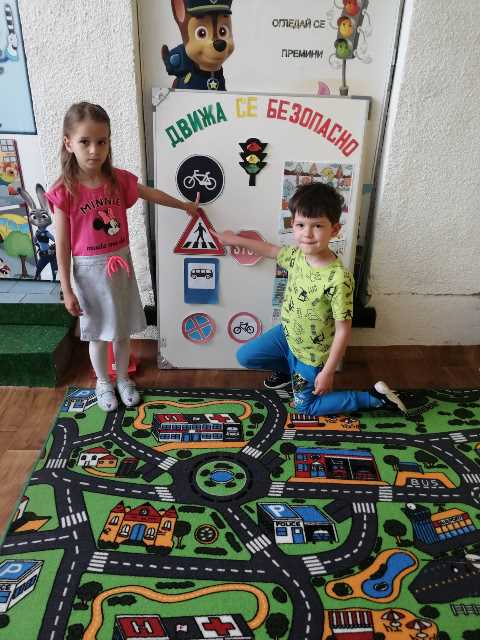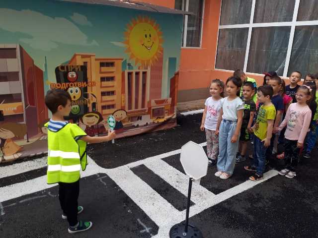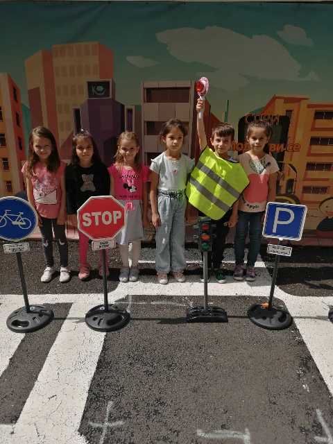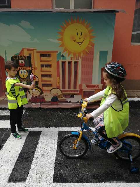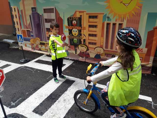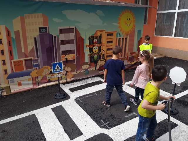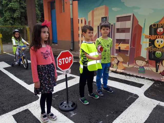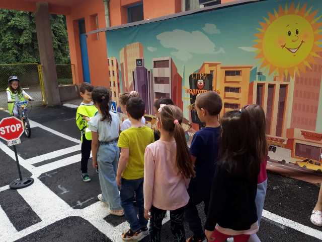 Бъдещите първокласници обобщиха и затвърдиха знанията си за тротоар, пешеходна пътека, кръстовище. Демонстрираха безопасно поведение на улицата на площадката по БДП в двора на детската градина, като караха колела и тротинетки. Децата вече познават добре правилата за движение по улицата, защото предстои да ходят самостоятелно на училище и да бъдат активни участници в движението.