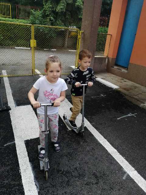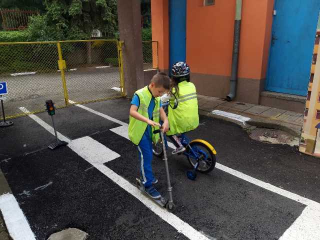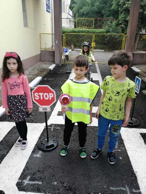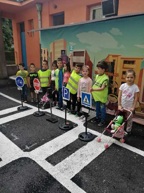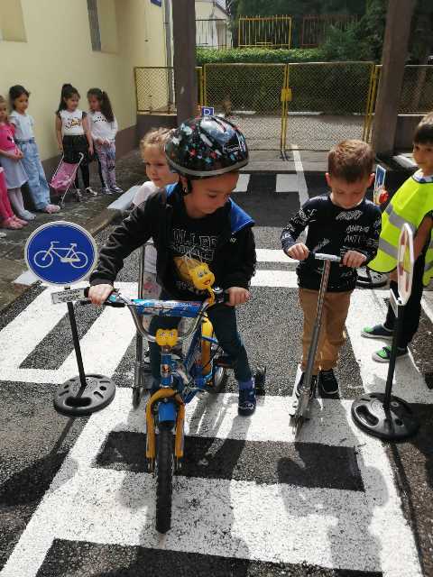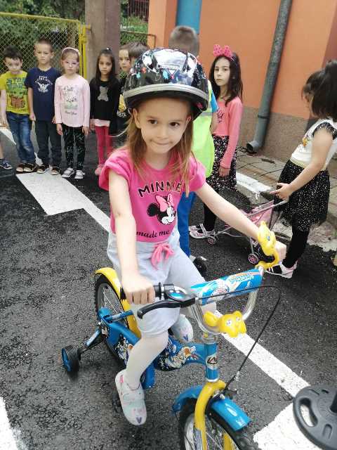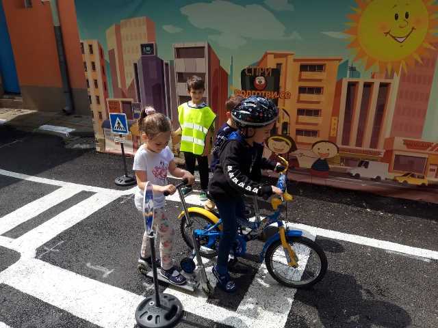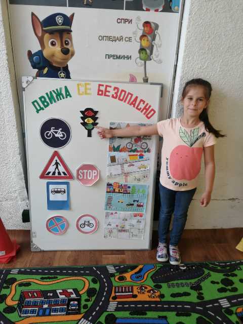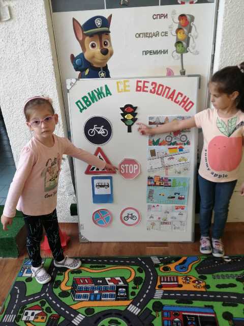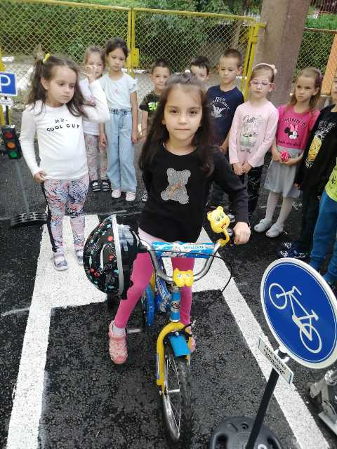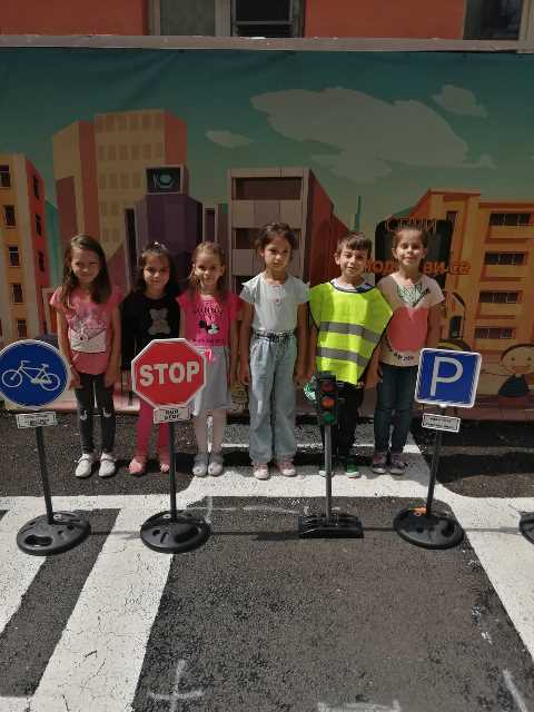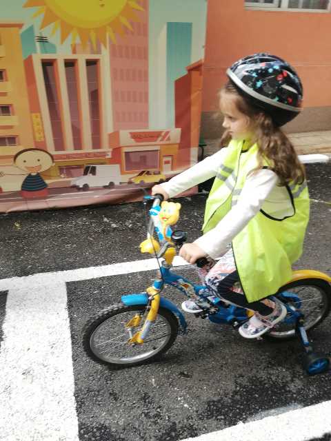Бъдещите първокласници обобщиха и затвърдиха знанията си за тротоар, пешеходна пътека, кръстовище. Демонстрираха безопасно поведение на улицата на площадката по БДП в двора на детската градина, като караха колела и тротинетки. Децата вече познават добре правилата за движение по улицата, защото предстои да ходят самостоятелно на училище и да бъдат активни участници в движението.