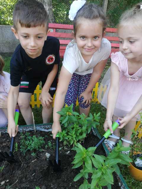Тази година акцента на световния ден на околната среда е „ Да живеем устойчиво в хармония с природата“. По този повод на 3 юни 2022 година децата от група „Звънче“ засадиха жасминов храст и се погрижиха за растенията в двора на детската градина– цветя, храсти и билки. Те грижливо ги прекопаха, оплевиха и поляха. Събраха изсъхналите клони и треви. Така показаха своето положително отношение към заобикалящият ни природен свят.