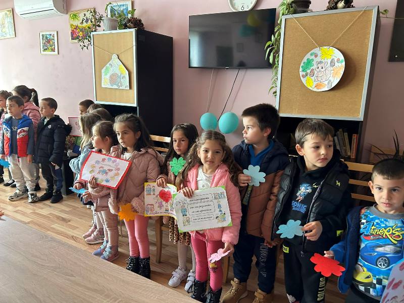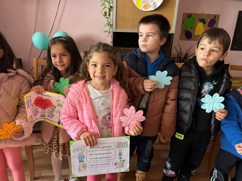 Малките „звънчете“ бяха подготвили подаръци, тематични картички, детелинки с 10-те златни правила на толерантността и изпяха песен за приятелството.