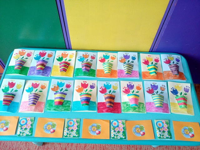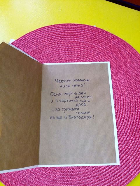 Децата от група "Звънче" и техните учители изработиха интересни картички за празника на мама. Те вложиха в направата им голямо желание и любов.