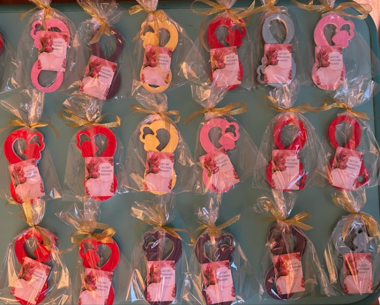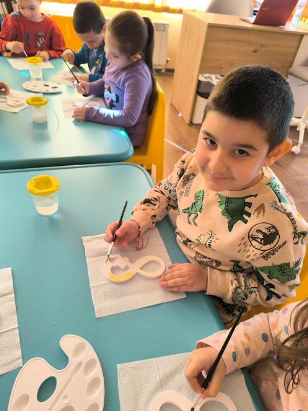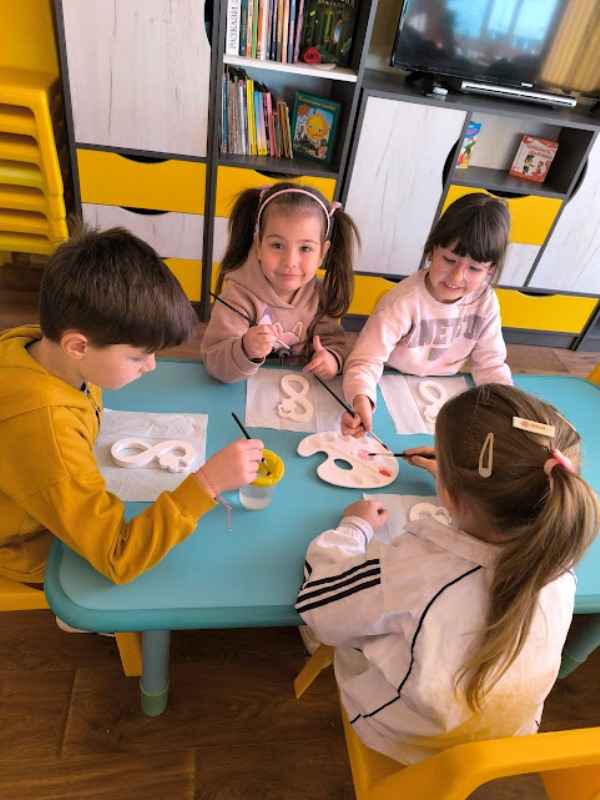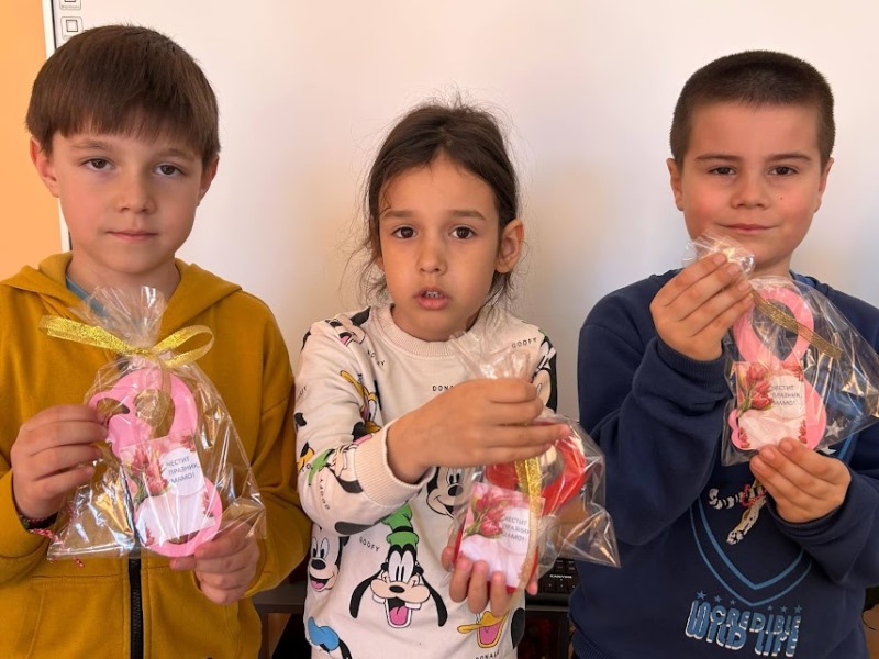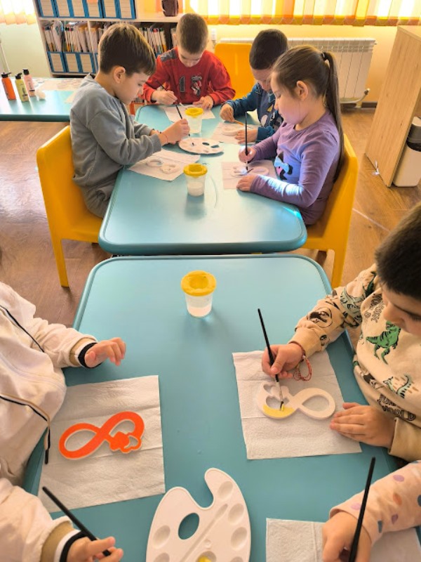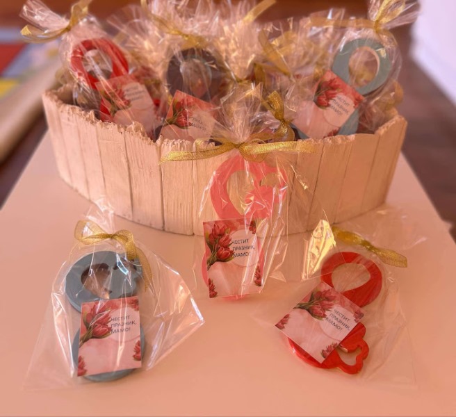 atelie 12За празника на мама- 8 март, децата от група „ Звънче“ се потрудиха в импровизираното арт - ателие, за да изработят подарък - изненада, с който да зарадват своите майки за грижите, подкрепата и любовта. Те сътвориха уникални произведения на изкуството – сувенири във формата на осмица и малки сърца изработени от гипс. Децата проявиха творчество и талант, за да украсят изненадите за своите майки.
