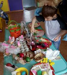 Великден е празник с богата и интересна история. Това е празник с много  цветове и багри. Един от най- веселите ритуали е разбира се боядисването на яйцата. Всеки се стреми неговите да са най- красиви и оригинални. Те се багрят в различни цветове, като първото задължително е в червен цвят и с него се натъркват бузките на дечицата , да са здрави, весели, румени, засмени. Съществуват много техники за оцветяване на великденски яйца. В днешни времена традицията отстъпва място на фантазията и креативни техники, с което ще направят празника още по- пъстър. Ето как се справиха децата от група "Звънче".