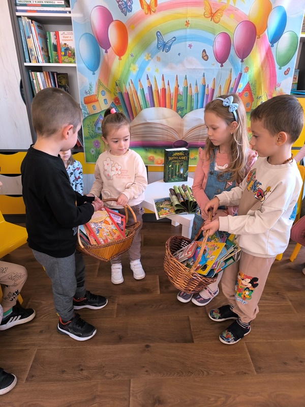 Децата от група "Катеричка" и група "Звънче" си размениха книжки с приказки и така подновиха библиотечните си кътове в занималните през месец октомври 2025 година.