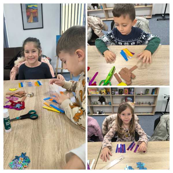 Децата с ентусиазъм се включиха в изработването на коледни украшения и играчки за елха.