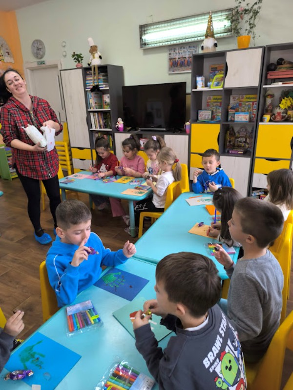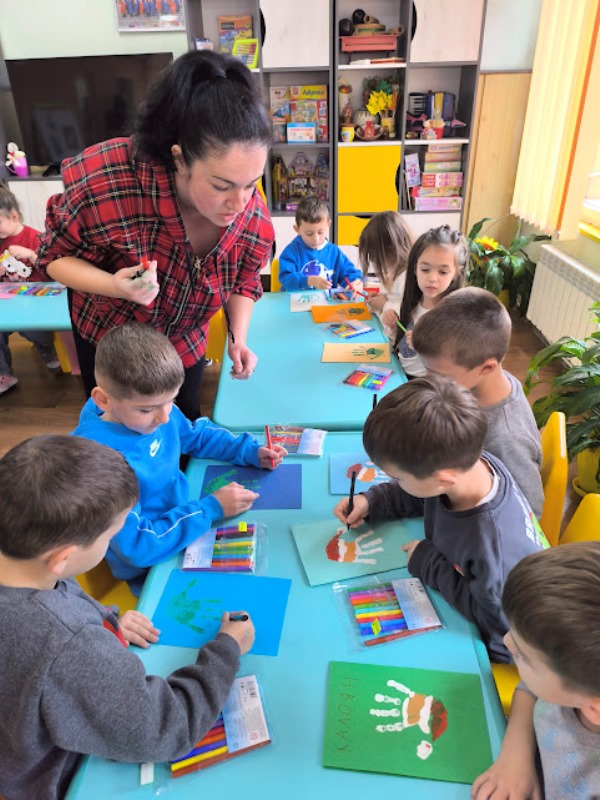 На 4 декември 2025 година в група „Звънче“ гостува Ася Григорова - майката на Рая, която с радост прие ролята на „учител за един ден“ и подготви за малките ни творци едно незабравимо коледно занимание. Тя се превърна в наш творчески наставник за един ден и подготви чудесно ателие за изработване на коледни картички, изпълнено с много цветове, въображение и добро настроение.
